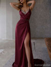 Classy Satin Ball Gown Beaded V-Neck Sleeveless High Slit Party Dress,OLP1832