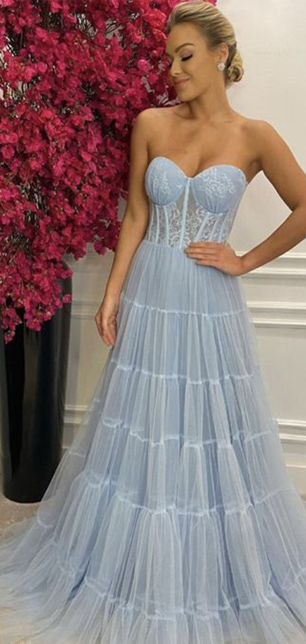 Elegant Blue Sweetheart A-Line Long Prom Dress Ideas, Evening Party Dresses , OLP1232