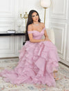 Elegant Pink Off-Shoulder Sleeveless A-Line Long Prom Dress Ideas, Evening Party Dresses ,OLP1181