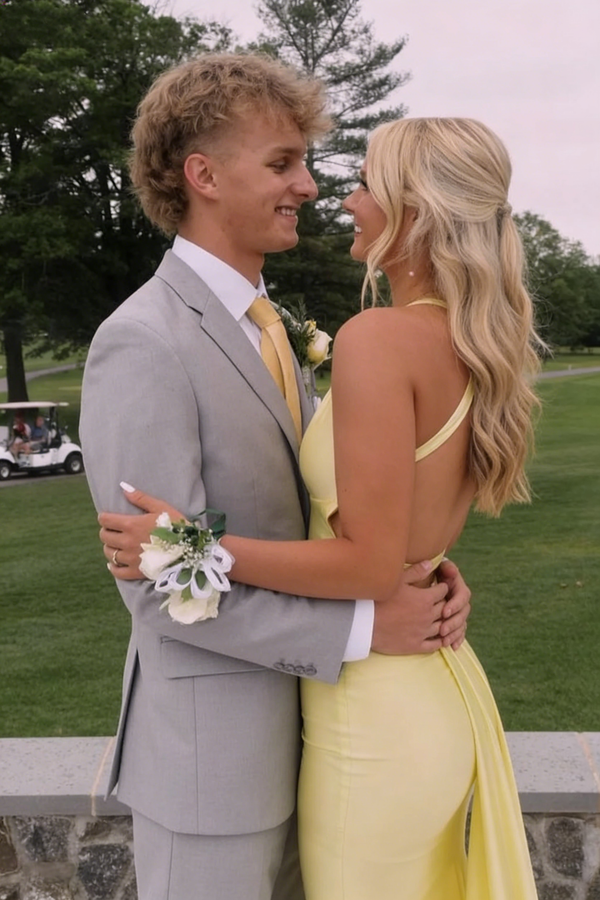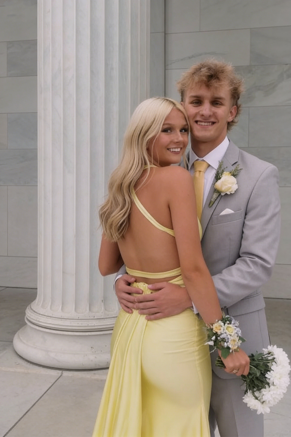 Modern Yellow Halter Neck Prom Gown with Open Back plus Mermaid Shape,OLP2040