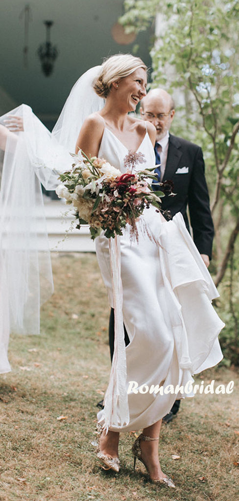 Simple V-neck Mermaid Open Back Long Sleeve Cheap Wedding Dresses,RBWD0040