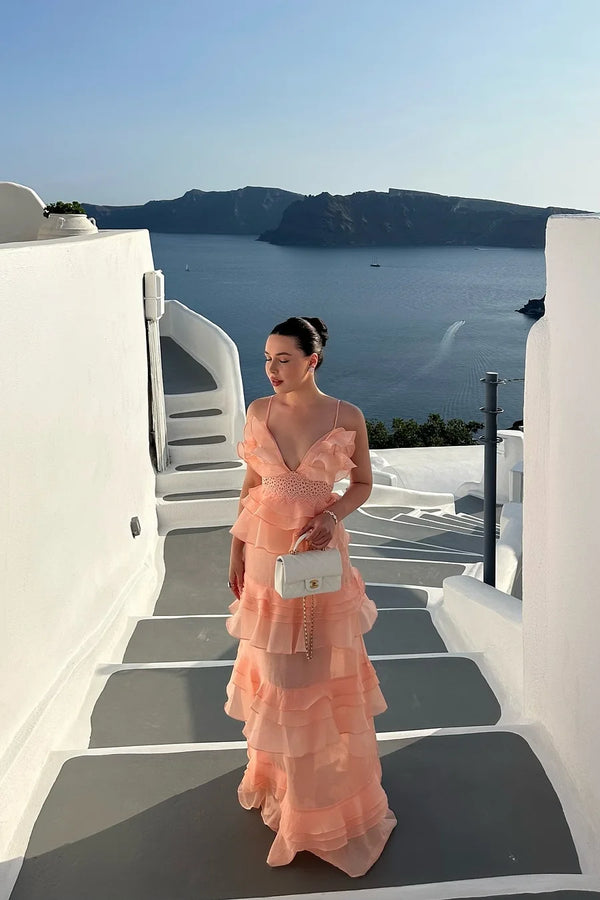 Elegant Coral Spaghetti Strap A-Line Long Prom Dress Ideas, Evening Party Dresses, OLP1400