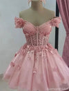 Elegant Floral Pink Off-Shoulder Short Sleeveless Homecoming Dresses For Birthday Party,HD1180