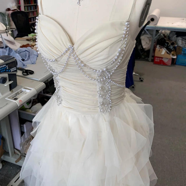 Elegant White Spaghetti Strap High Low Sleeveless Homecoming Dresses For Birthday Party,HD1182