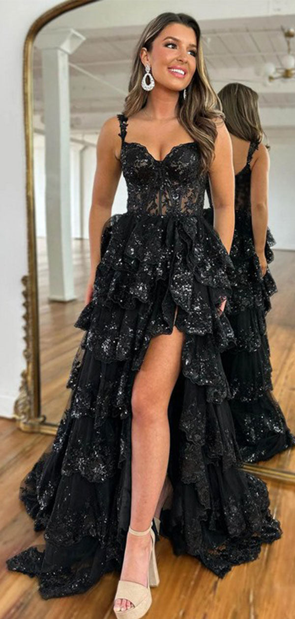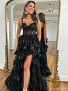 Sexy Black Spaghetti Strap High Low Long Prom Dress Ideas, Evening Party Dresses , OLP1233