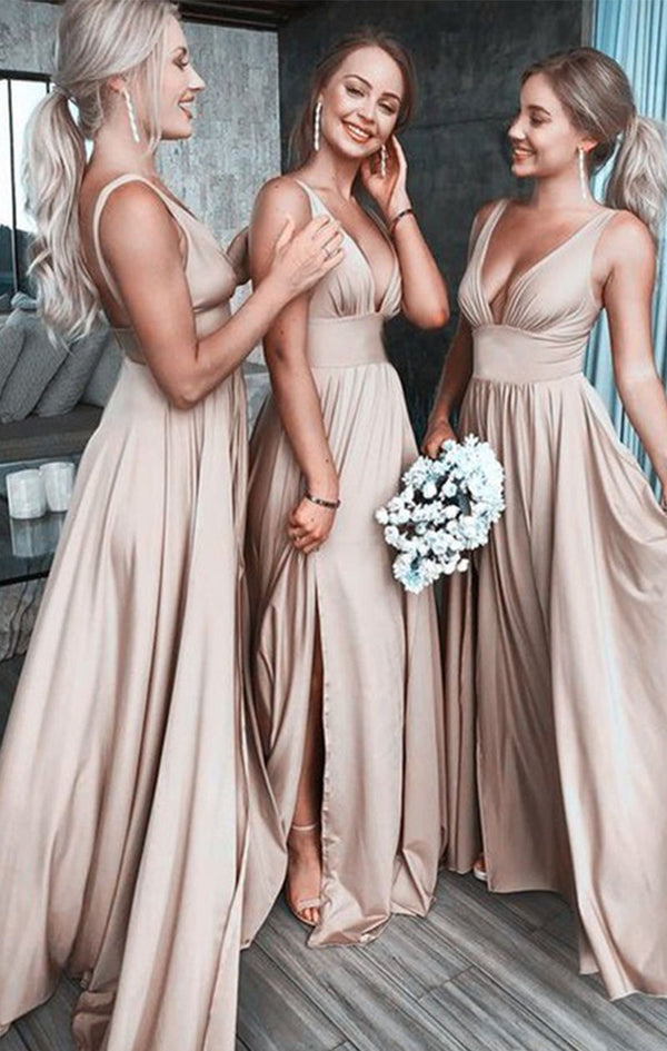 Elegant Champagne Spaghetti Strap Sleeveless A-Line Long Bridesmaid Dresses Online , BG881