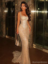 Sparkly Champagne Gold Sequin Prom Dress Fancy Square Sleeveless Formal Gown,OLP1716