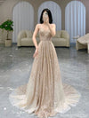 Shiny Gold Spaghetti Strap A-Line Long Prom Dress Ideas, Evening Party Dresses , OLP1242