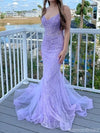 Elegant Spahetti Strap Lavender Applique Mermaid Long Prom Dress Ideas, Evening Party Dresses , OLP1237