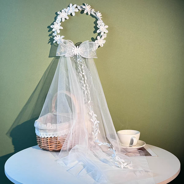 Elegant Design – Layered soft tulle veil paired with a large sheer bow for a dreamy, graceful look.