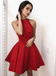 A-Line Red Sleeveless Halter Backless Pleats Short Homecoming Dress, HD0397