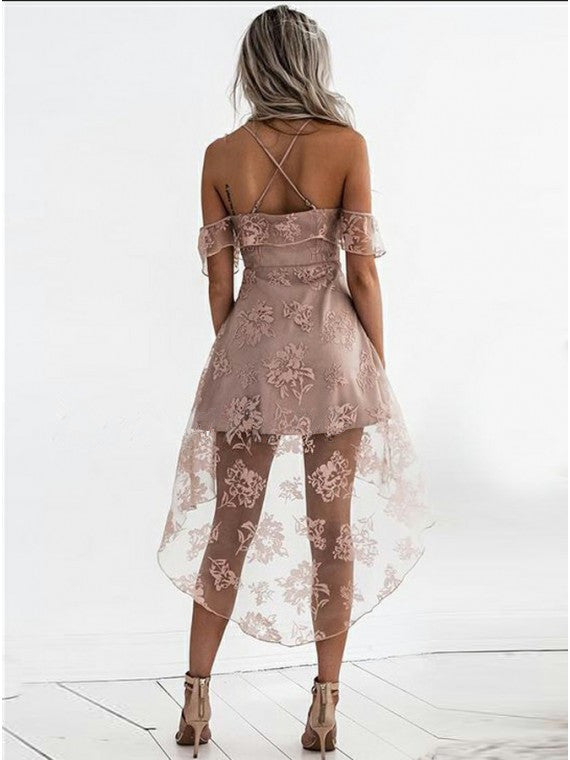 A-Line Spaghetti Straps off-shoulder Front short back long Pink Lace H
