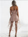 A-Line Spaghetti Straps off-shoulder Front short back long Pink Lace Homecoming dresses, HD0340