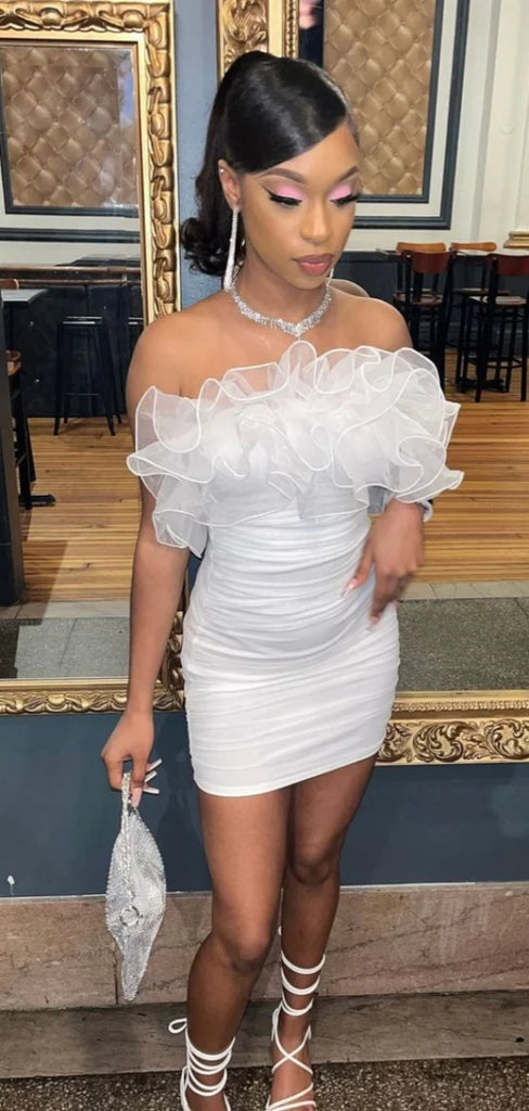 Sexy Off-shoulder White Sleeveless Mermaid Satin Homecoming Dresses For Party Online, HD1026