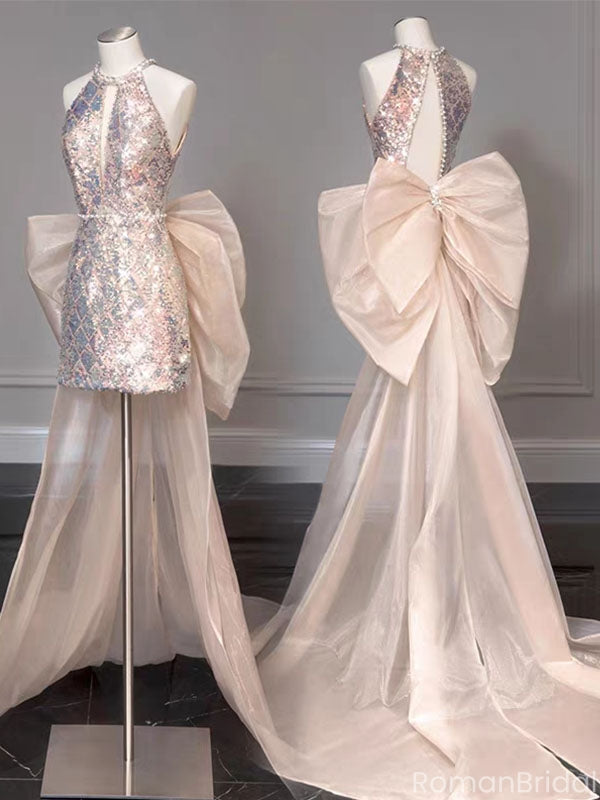 Shiny Pink Halter Mermaid Short Homecoming Dresses For Party,HD1159