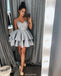 Spaghetti Straps Lace Appliques Grey Short Juniors Pleat Homecoming Dresses, HD0377