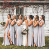 Elegant Gray V-Neck Sleeveless Mermaid Long Bridesmaid Dresses Online , BG880