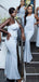 Elegant One Shoulder Sleeveless Mermaid Sky Blue Long Satin Bridesmaid Dresses, BG519