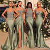 Simple Green Mismatched Sleeveless Mermaid Long Bridesmaid Dresses Online, BG882