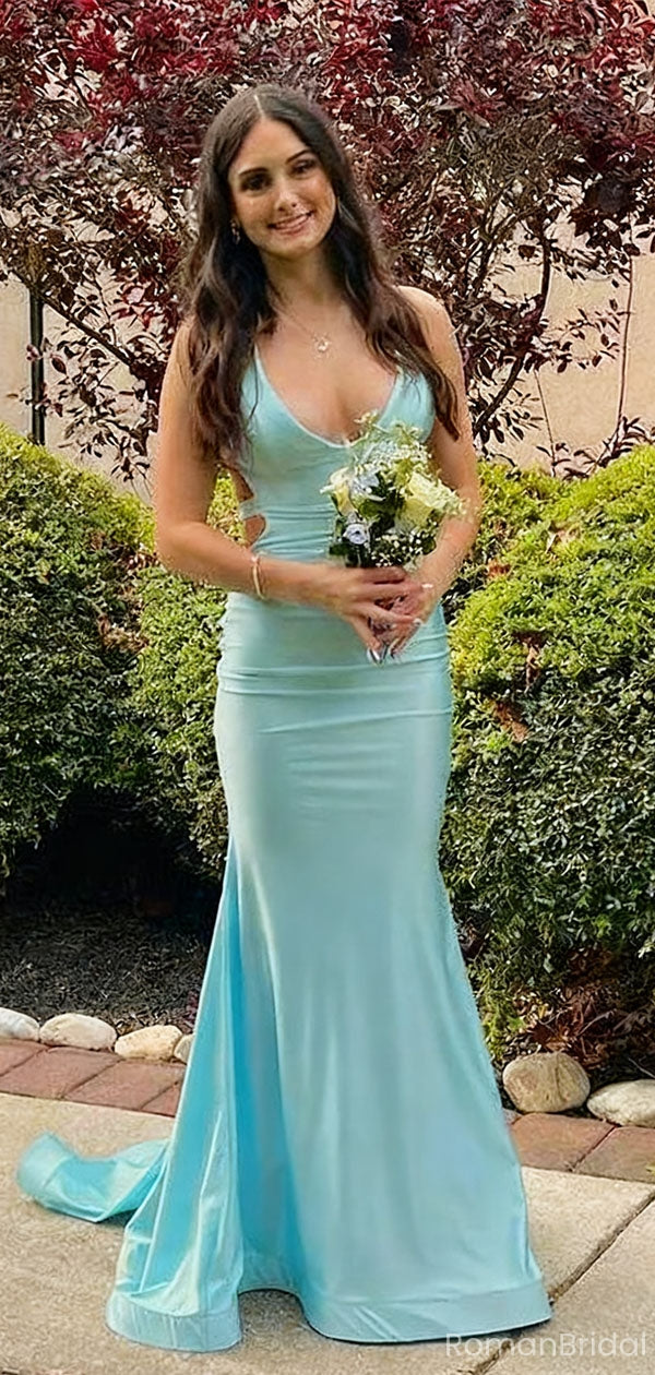Elegant Teal Spaghetti Strap Mermaid Long Prom Dress Ideas, Evening Party Dresses, OLP1317