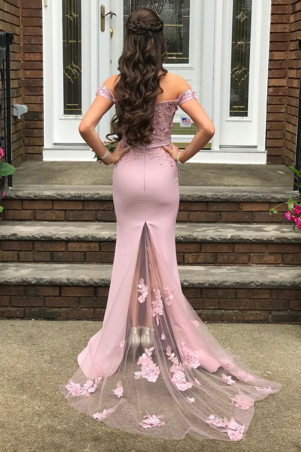 Elegant Pink Off-Shoulder Sleeveless Mermaid Long Prom Dress Ideas, Evening Party Dresses ,OLP1197