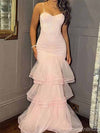 Elegant Pink Spaghetti Strap Mermaid Long Prom Dress Ideas, Evening Party Dresses, OLP1429