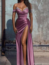 Sexy Purple Off-Shoulder Sleeveless Mermaid Side Slit Long Prom Dress