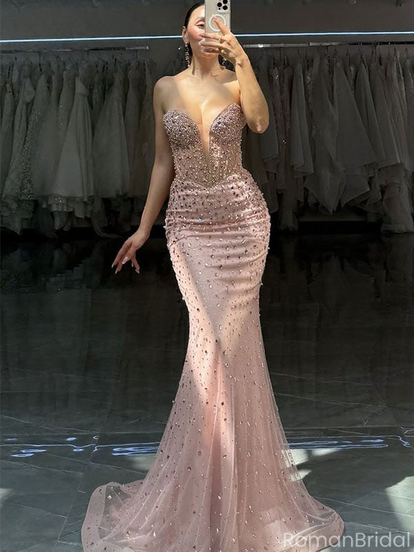 Shiny Pink Sweetheart Sleeveless Mermaid Long Prom Dress Ideas, Evening Party Dresses ,OLP1191