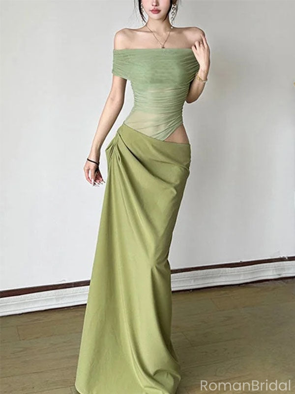 Unique Green Off-Shoulder Mermaid Long Prom Dress Ideas, Evening Party Dresses, OLP1376