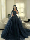 Elegant Navy Blue Spaghetti Strap A-Line Long Prom Dress Ideas, Evening Party Dresses, OLP1563