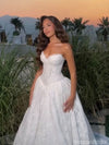 Sexy White Sweetheart Sleeveless A-Line Lace Long Wedding Dresses With Sweep Trailing,WD0554