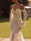 Sexy White Sweetheart Long-Sleeve Mermaid Long Wedding Dresses With Sweep Trailing,WD0568