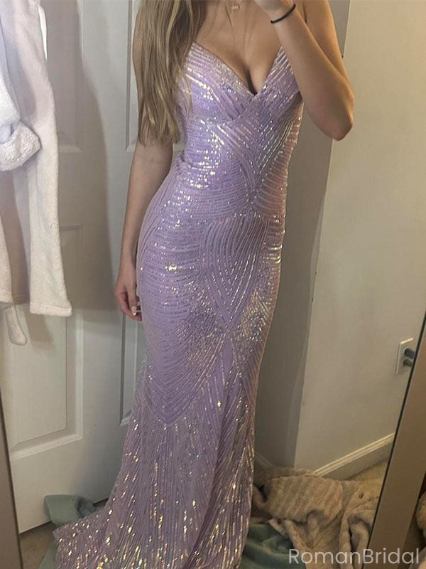 Charming Purple Spaghetti Strap Mermaid Long Prom Dress Ideas, Evening Party Dresses, OLP1360