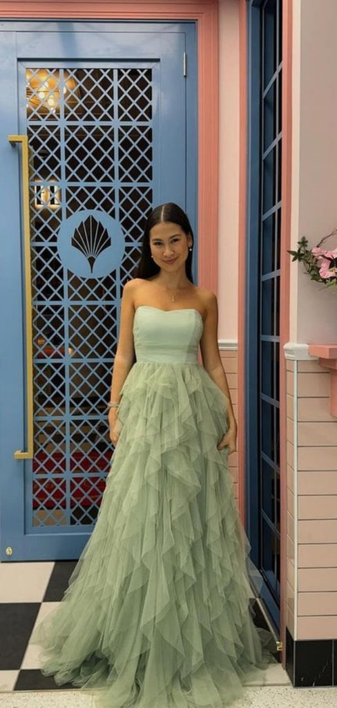 Cute Sweetheart Sleeveless A-line Ruffles Tulle Evening Prom Dresses Online, OLP796