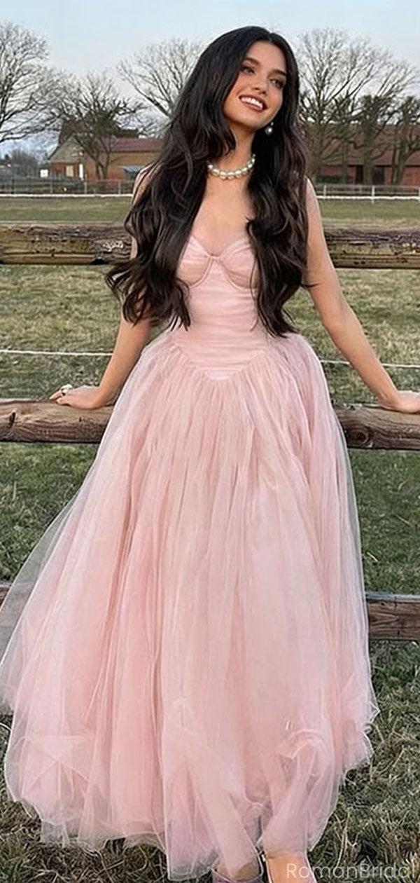 Dreamy Blush Pink Tulle Prom Gown Corset Top Sleeveless A-Line Ball Dress,OLP1838