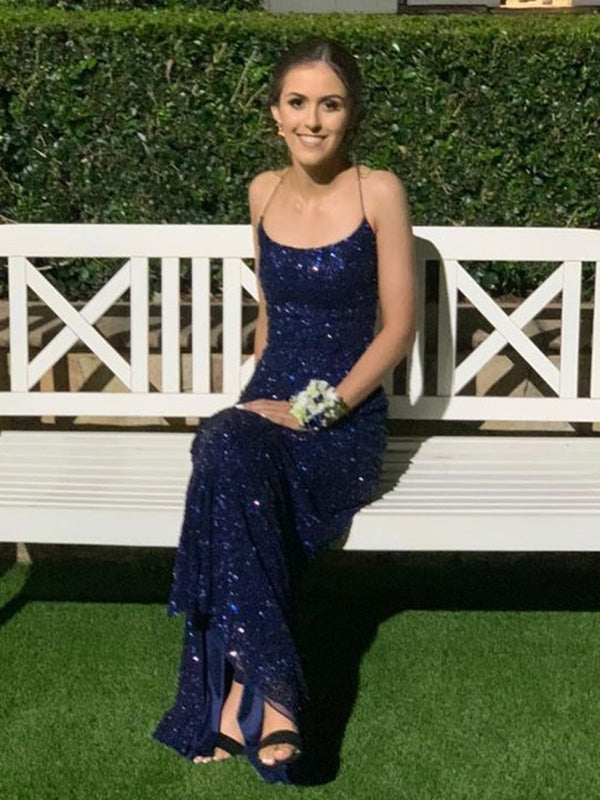 Sexy Spaghetti Strap Sleeveless Mermaid Sequin Evening Prom Dresses Online, OLP807