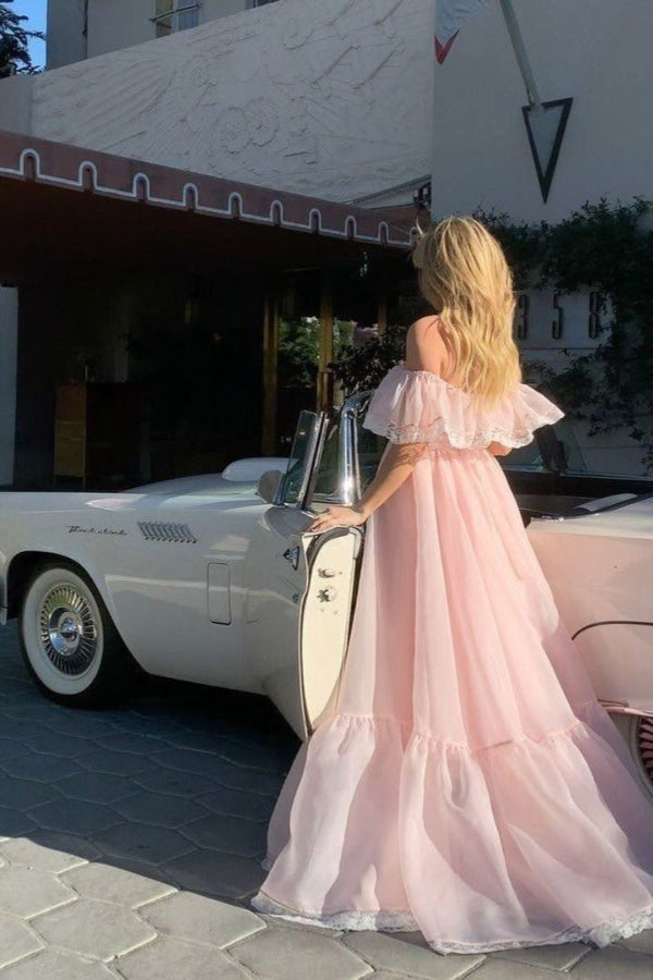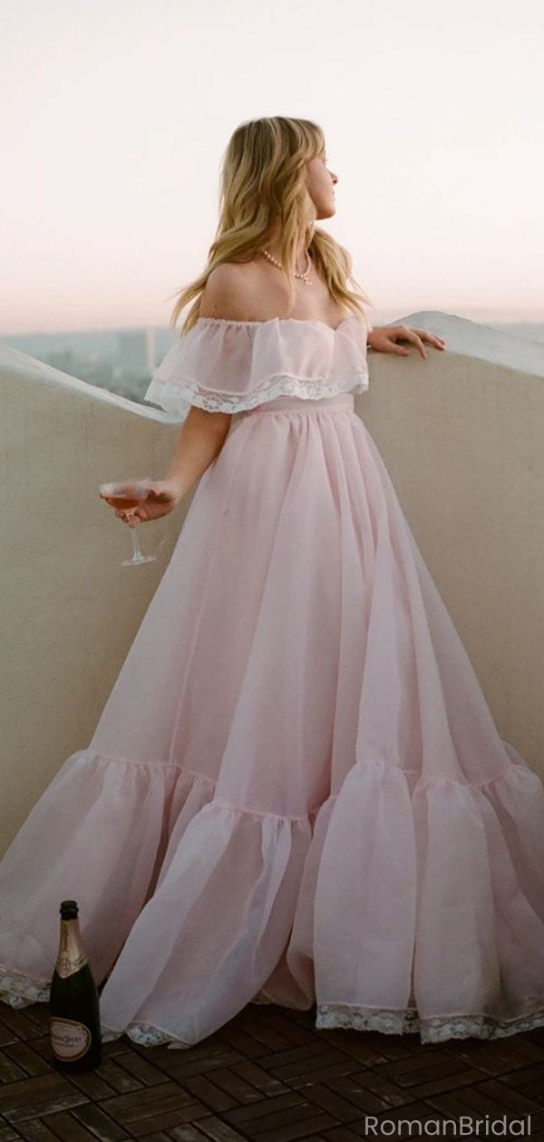 Elegant Off-the-Shoulder Organza Prom Dress Pink A-Line Formal Gown,OLP1785