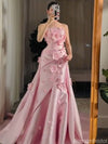 Elegant Pink Floral Sweetheart A-Line Long Prom Dress Ideas, Evening Party Dresses , OLP1243