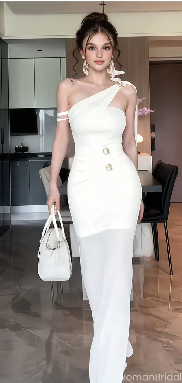 Elegant White One-Shoulder Mermaid Long Prom Dress Ideas, Evening Part