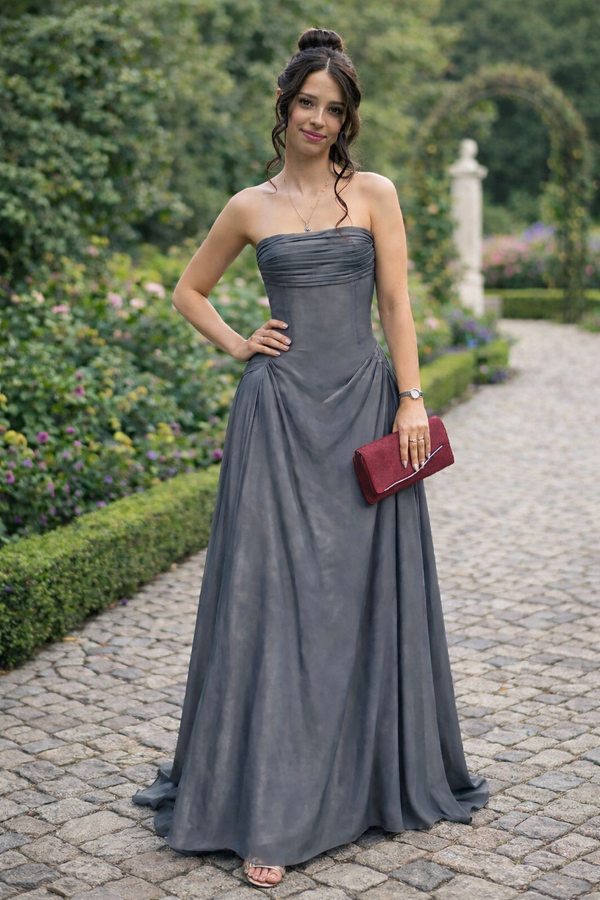 Fancy Grey Strapless Corset Prom Dress Drape Skirt Floor-Length Gown,OLP1806