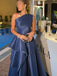 Formal One shoulder Sleeveless A-line Satin Long Evening Prom Dresses Online, OLP694