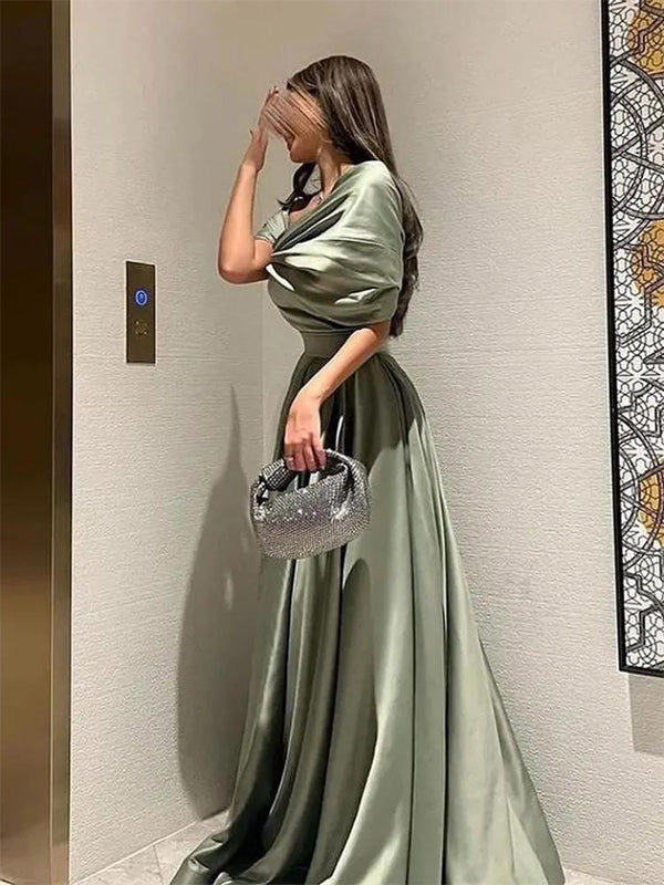 Formal Off-shoulder Sleeveless A-line Satin Long Evening Prom Dresses Online, OLP769