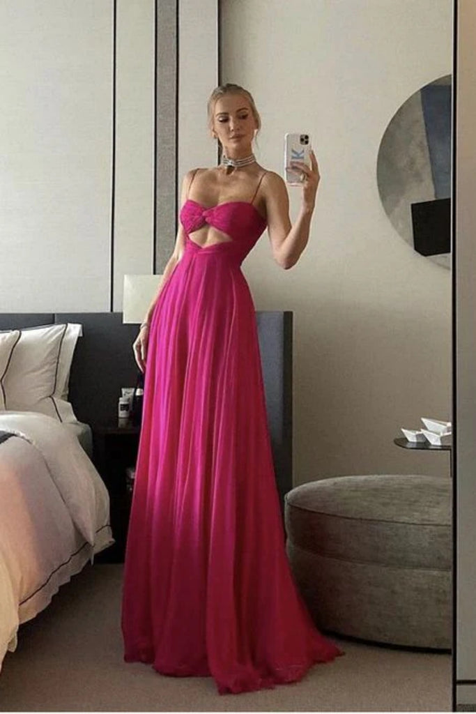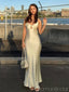 Formal Spaghetti Strap Sleeveless A-line Satin Evening Prom Dresses Online, OLP800