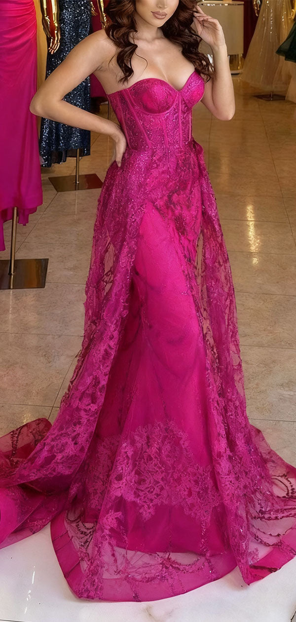 Gorgeous Pink Sweetheart A-Line Lace Long Prom Dress Ideas, Evening Party Dresses , OLP1215