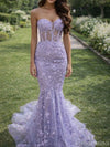 Modern Lavender Butterfly Lace Prom Gown Sheer Corset Mermaid Evening Dress,OLP1843
