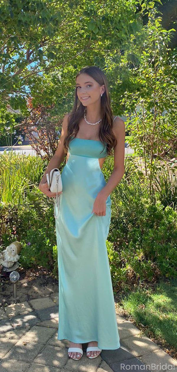 Modern Teal Satin Cutout Evening Gown Sleeveless Square Neck Backless Formal Prom Dress,OLP1761
