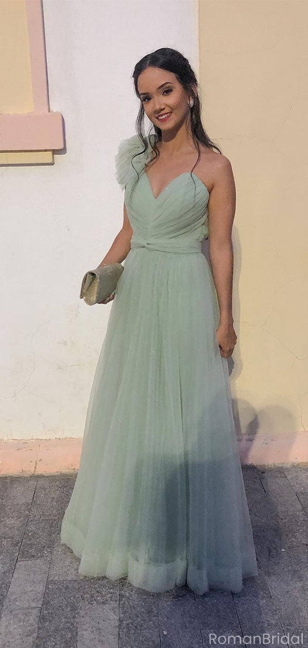 Popular Floral Green V-Neck A-Line Sleeveless Long Prom Dress Ideas, Evening Party Dresses, OLP1323