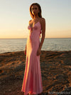 Pretty Pink Satin Maxi Mermaid Prom Dress with Tie-Front Cutout,OLP1784