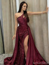 Sexy Burgundy One-Shoulder Mermaid Long Prom Dress Ideas, Evening Party Dresses, OLP1666