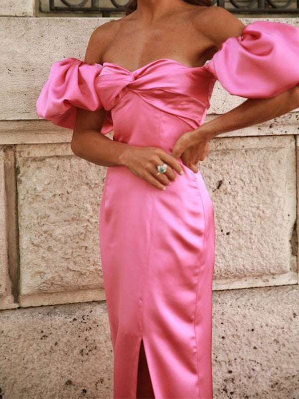 Sexy Off-shoulder Sleeveless Mermaid Satin Evening Prom Dresses Online, OLP856